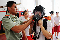 美女乘务员学消防
