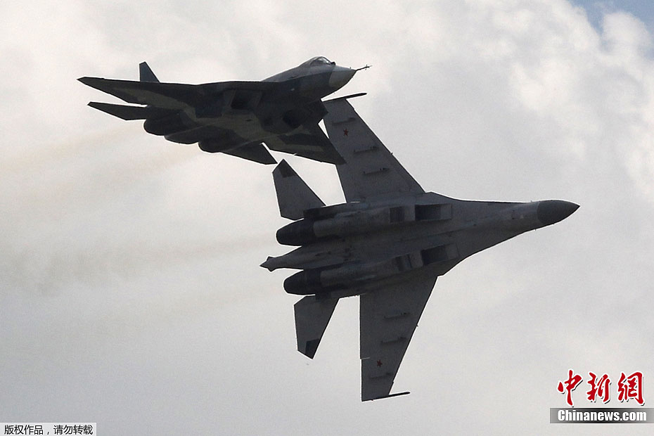 俄罗斯航展公众开放日上的飞行表演