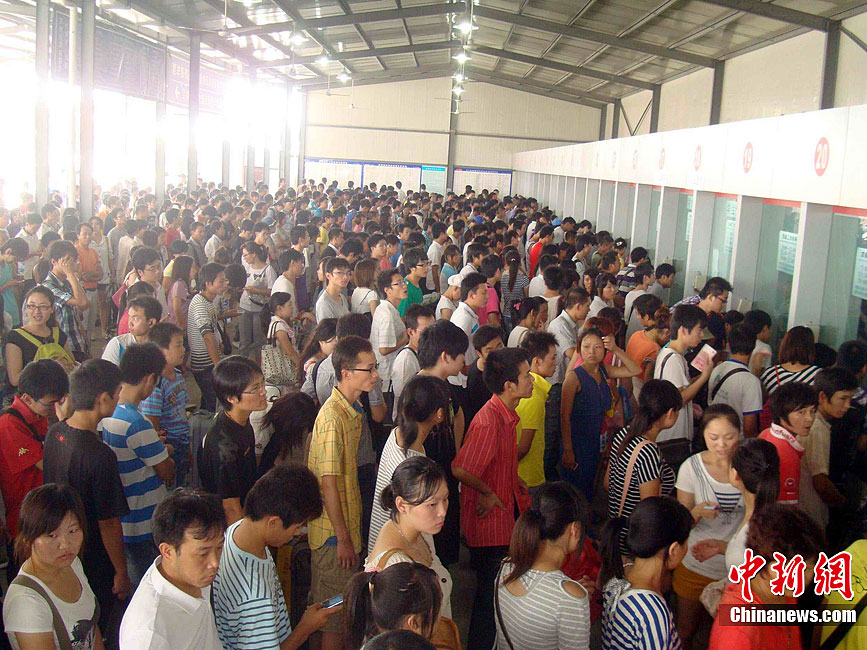 8月20日,苏州火车站售票处满了排队购票的旅客。暑期即将结束,江苏苏州许多旅客纷纷购买返程火车票,苏州火车站迎来以返校学生为主的暑期旅客购票高峰。苏州火车站采取开设学生售票专窗、延长售票时间等办法,方便旅客及时购到返程火车票。中新社发 王建康 摄 图片来源:CNSPHOTO