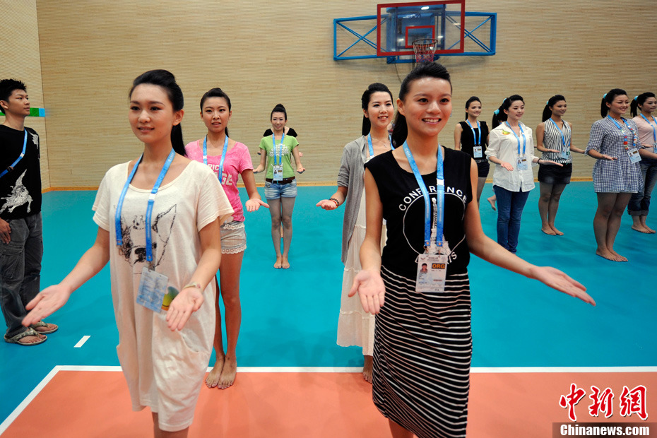 第26届深圳世界大学生运动会即将闭幕,台上光彩照人的颁奖礼仪志愿者们以青春靓丽的风采一次次成为赛场瞩目的焦点,她们用数不清的汗水与微笑服务着大运,成为了自信、青春和美丽的代名词。据了解,本届大运会共有350个礼仪志愿者参加大运会32个决赛场馆共306场颁奖仪式。中新网记者 金硕 摄
