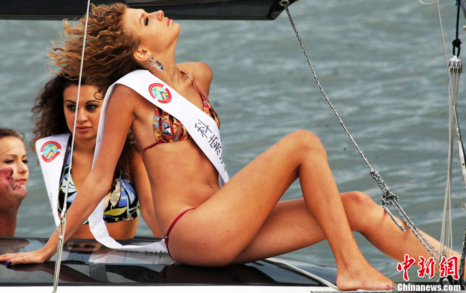 世界比基尼佳丽天津演绎热辣皮制比基尼