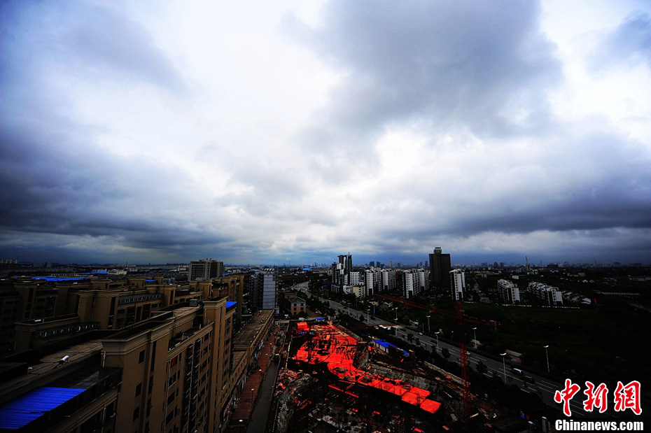 8月22日,江苏扬州地区上空,云层与大地呈现“一线天”奇观。中新社发 孟德龙 摄 图片来源:CNSPHOTO