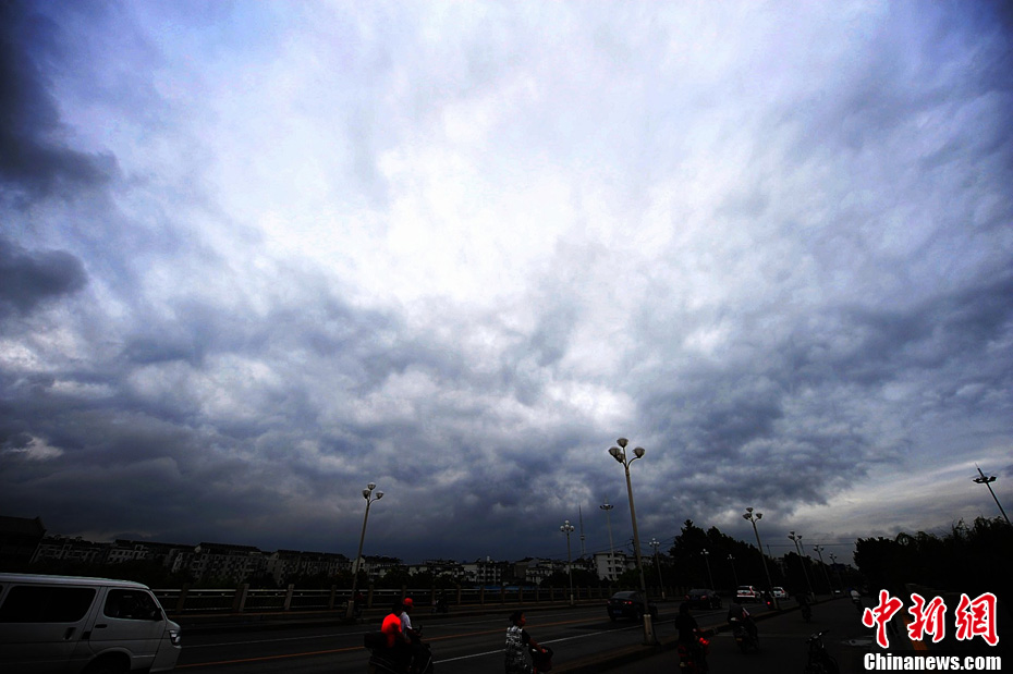 江苏扬州上空"一线天"