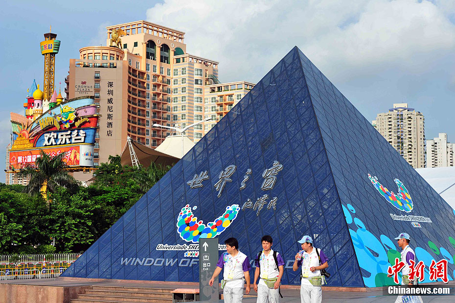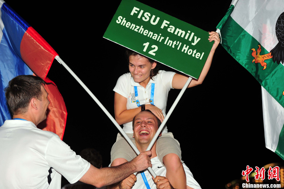 8月23日晚,深圳第26届世界大学生夏季运动会在世界之窗闭幕,运动员、教练员、随队官员难别深圳、难说再见,下届大运会在俄罗斯喀山相聚。中新社发 陈文 摄