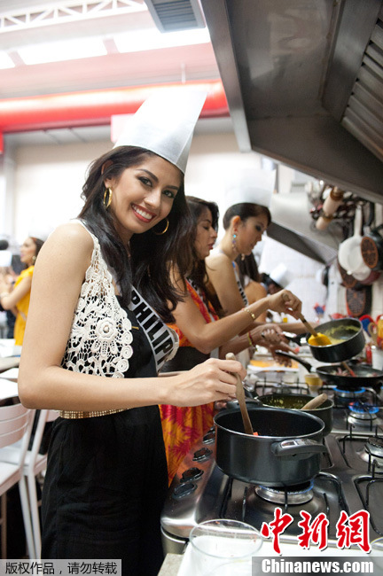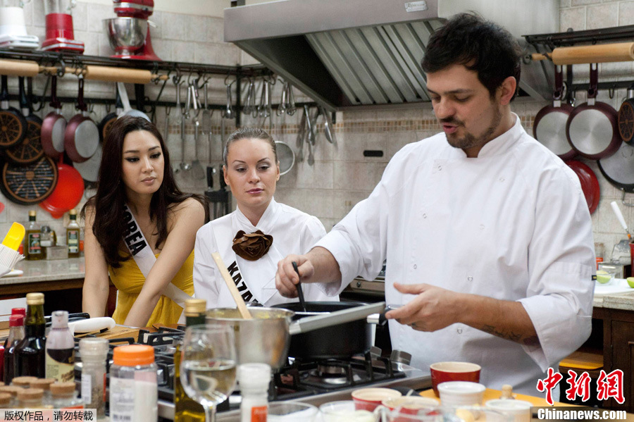 当地时间8月27日,来自世界各国的环球小姐齐聚巴西圣保罗,在当地一所烹饪学校学习烹饪。据悉,2011环球小姐总决赛将在9月12日举行。