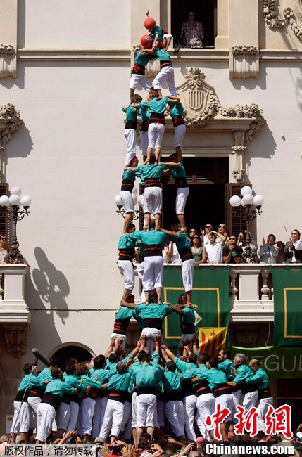 8月31日,一场别开生面的“叠罗汉”大赛在西班牙东部的佩内德斯自由镇上举行,“叠罗汉”是当地传统活动,通常搭建一座“人塔”需要100到200人。