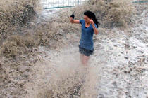 女记者险被回头潮打倒