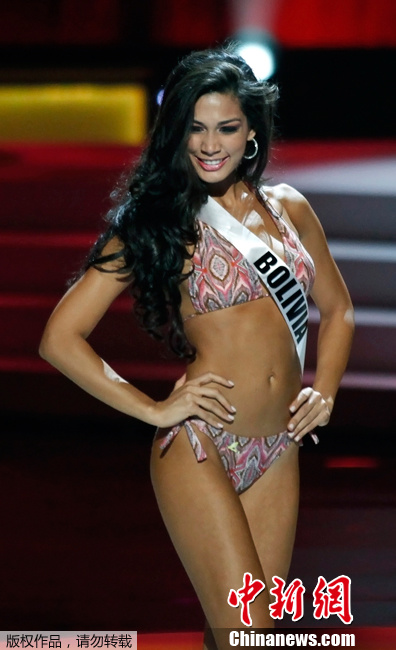 9月8日,2011环球小姐总决赛预赛在巴西最大城市圣保罗进行,来自全球各地的89名决赛入围者向12日的总决赛发起最后冲刺。图为参赛佳丽进行泳装展示。
