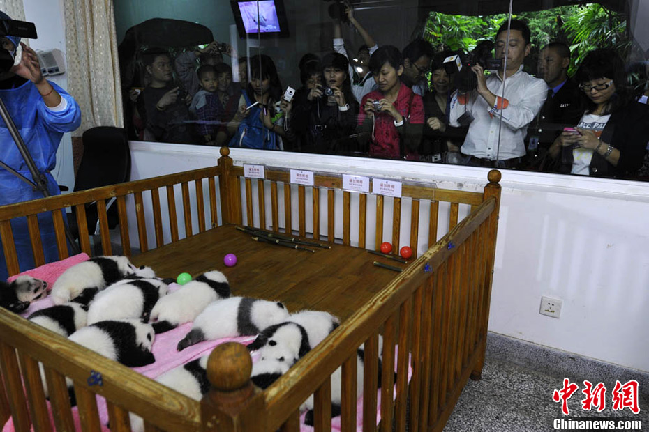 今年在保证“种群质量”优先的前提下,成都圈养大熊猫繁育再获丰收,共繁育成活大熊猫8胎12仔。9月26日,12只新生大熊猫宝宝集体亮相成都大熊猫繁育研究基地太阳产房。安源