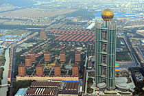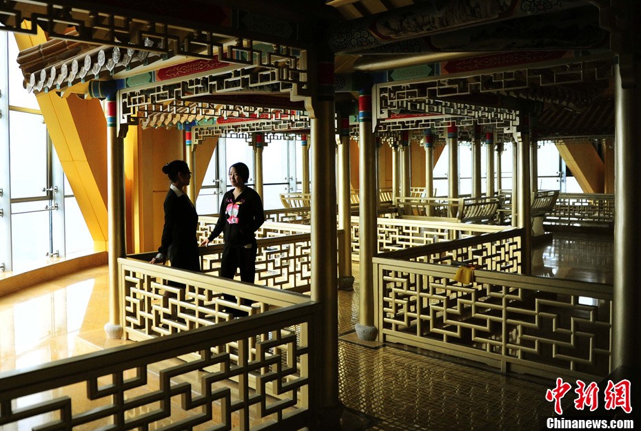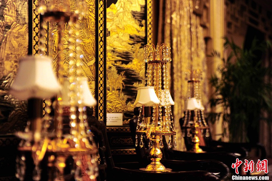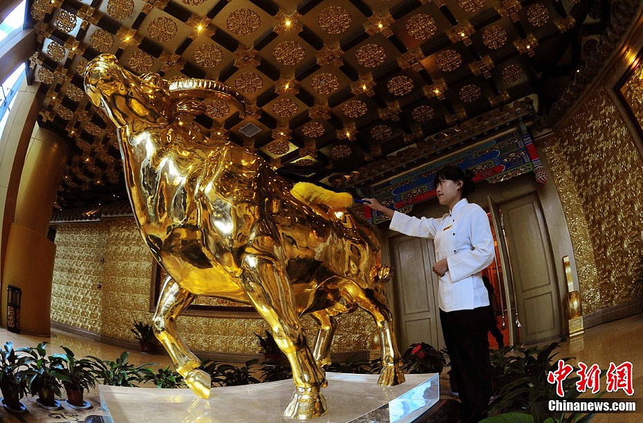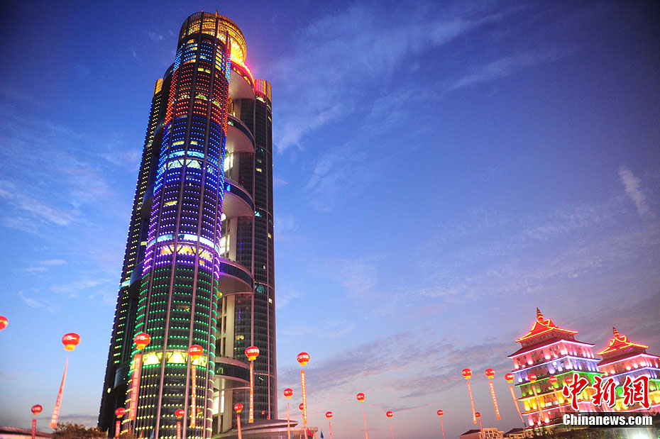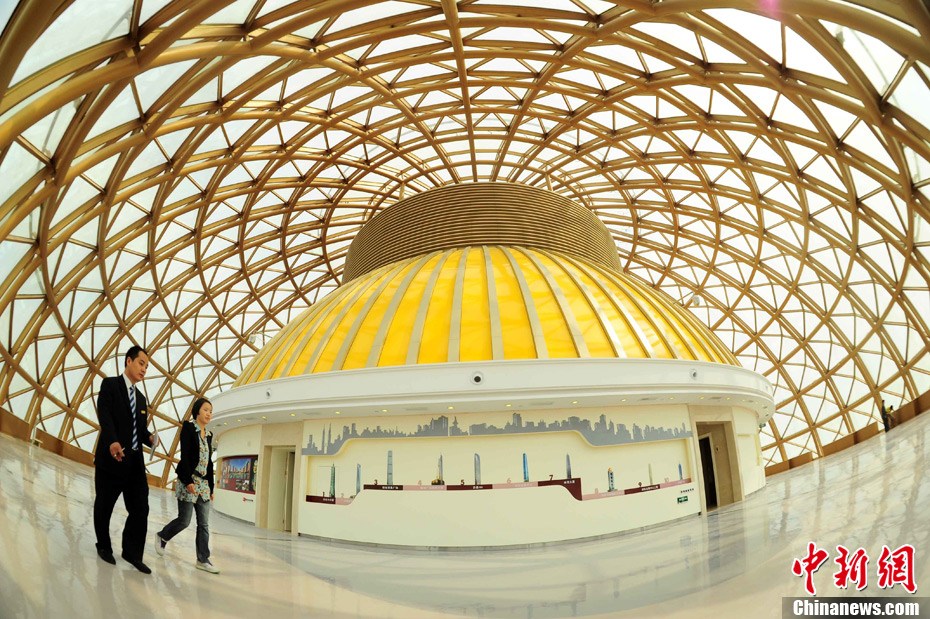 10月8日,由华西村村民每户出资1000万元,筹资30亿元人民币建起高328米的“黄金酒店”——龙希国际大酒店剪彩开业。该酒店,是中国国内最大的单体酒店之一,也是华西村为迎接和庆祝华西五十年村庆的一大献礼。而酒店开业后更显奢华,顶部的61层会有空中花鸟园、空中游泳池;酒店二楼则设有2000平方米的购物区。此前,有人指责高楼是“炫富工程”。但在华西村老书记吴仁宝的眼里,这是“农村城市化”的体现,“让城里人到农村来花钱”。中新社发 杨可佳 摄