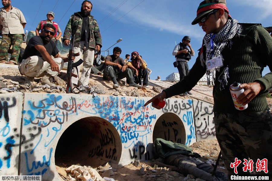10月20日,利比亚米苏拉塔,卡扎菲的一名儿子穆塔西姆身亡。据报道,利比亚执政当局一名军事指挥官称,卡扎菲的一名儿子穆塔西姆20日被发现死于苏尔特。