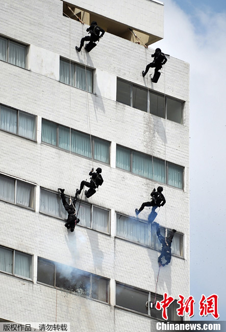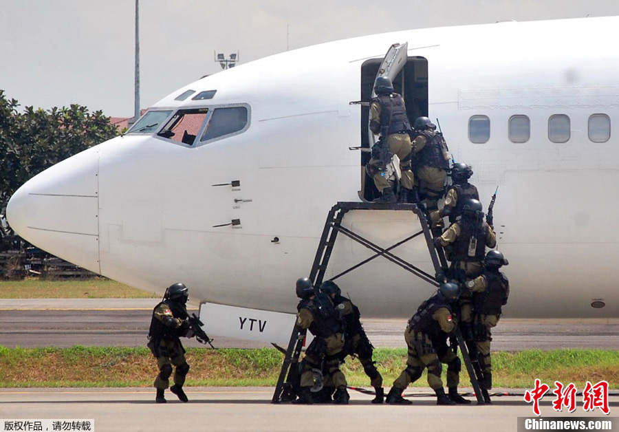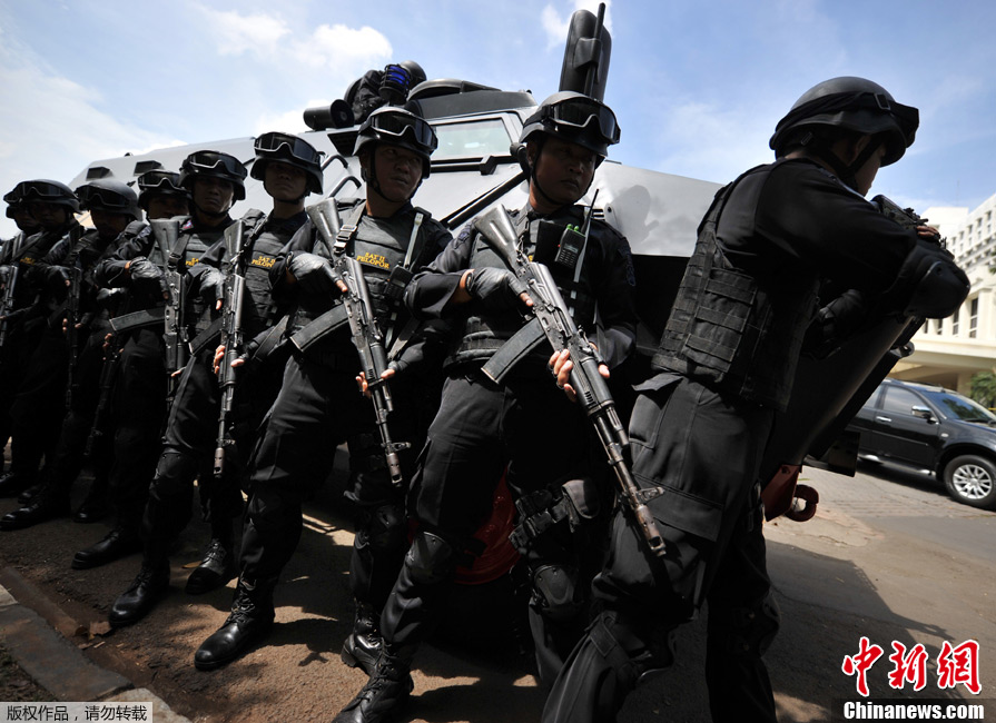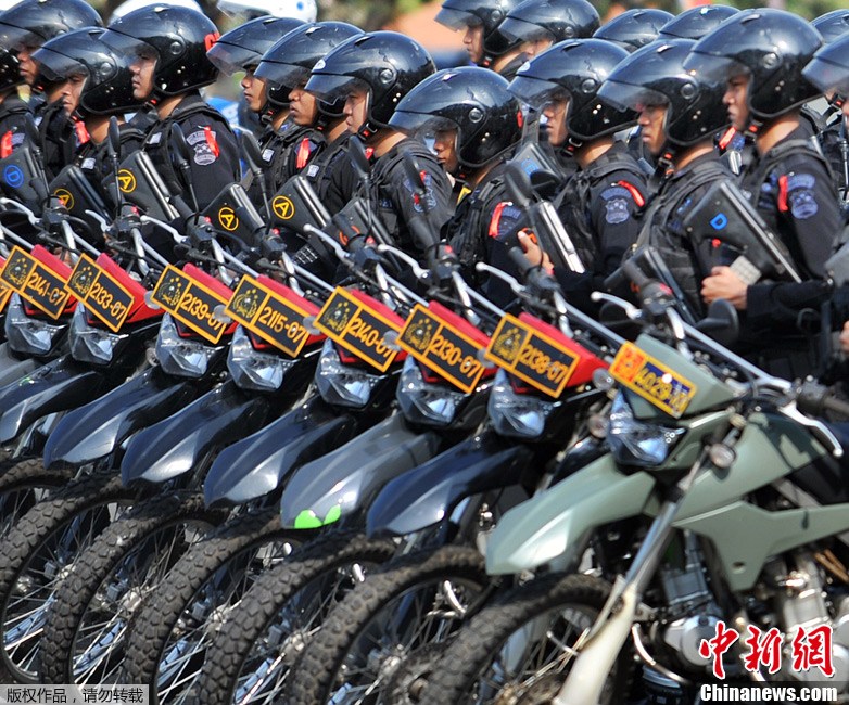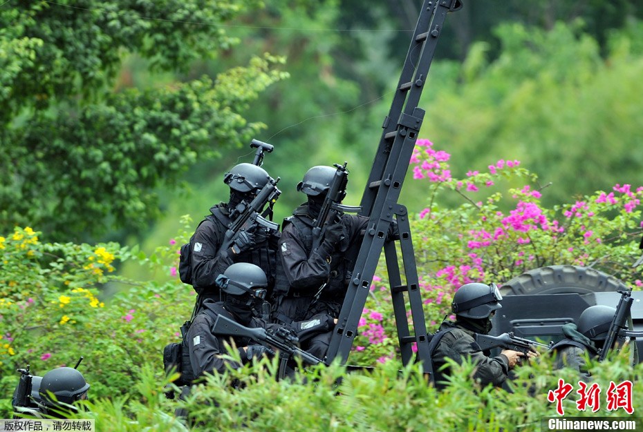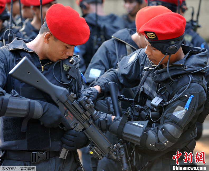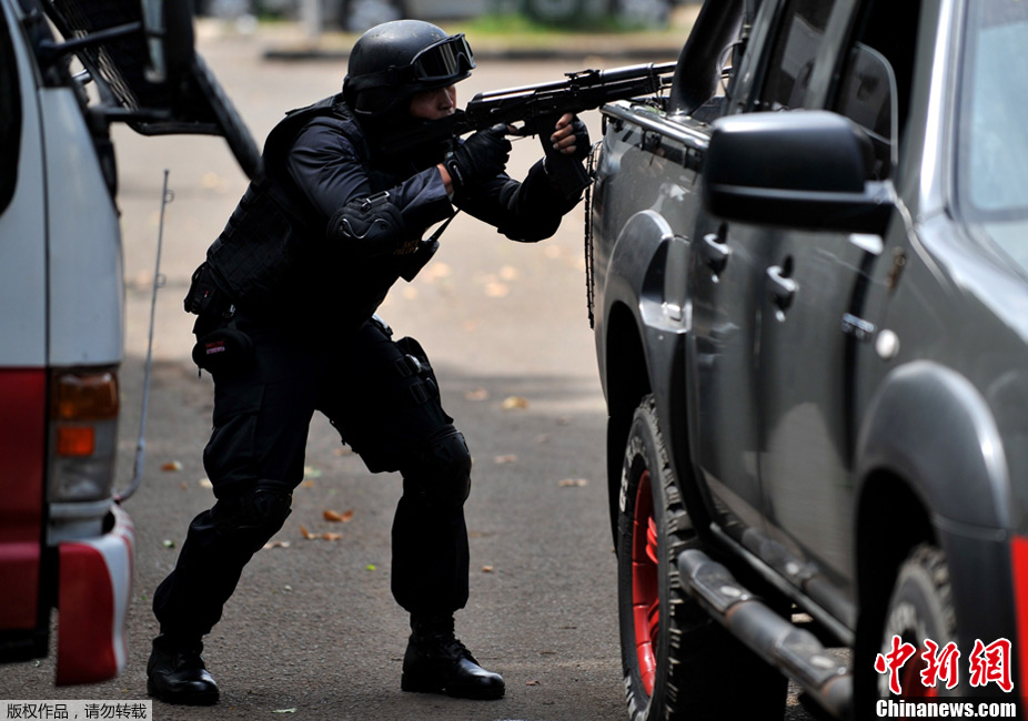 10月27日,印度尼西亚首都雅加达,印尼特种部队队员参加联合反恐演习。据悉,此次反恐演习旨在彰显印尼反恐的决心,同时为11月在印尼举行的第26届东南亚运动会的安保工作练兵。