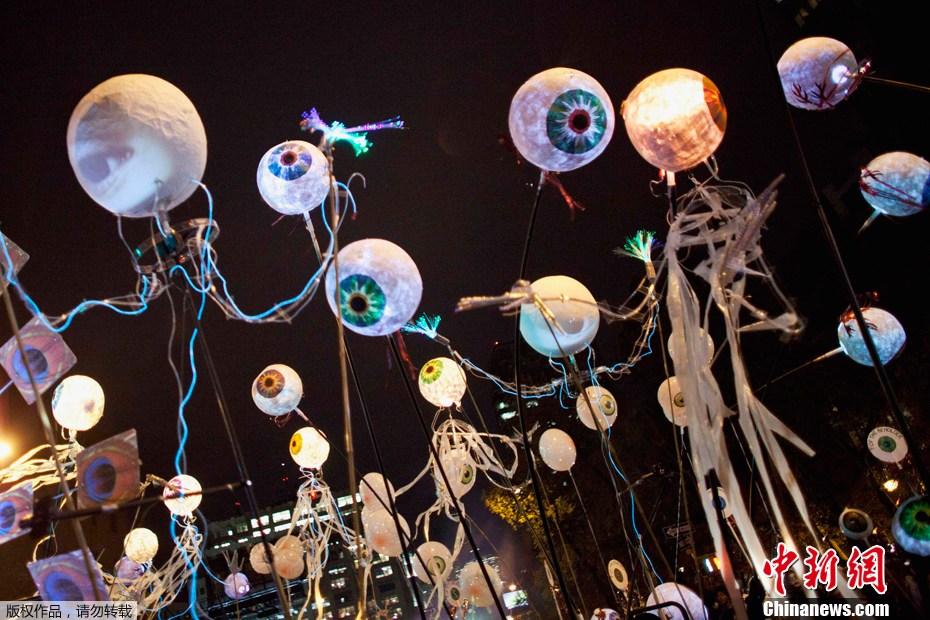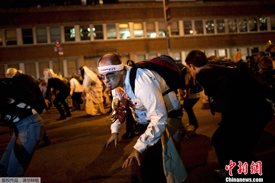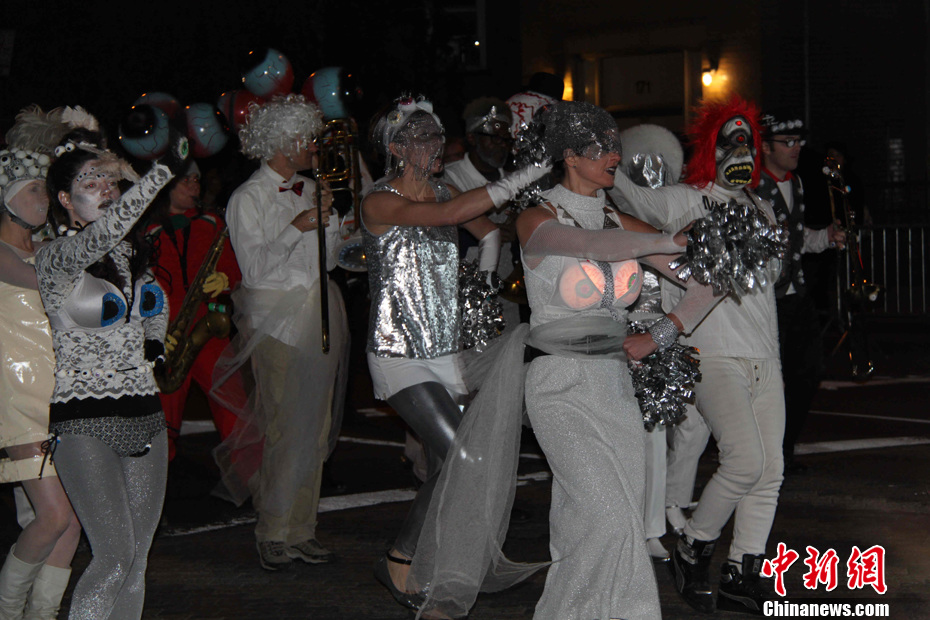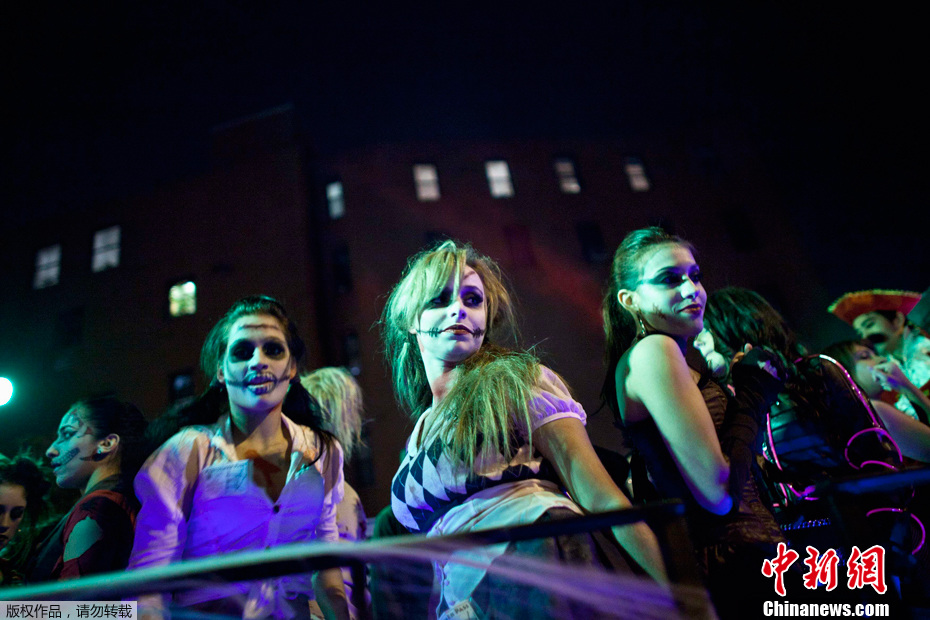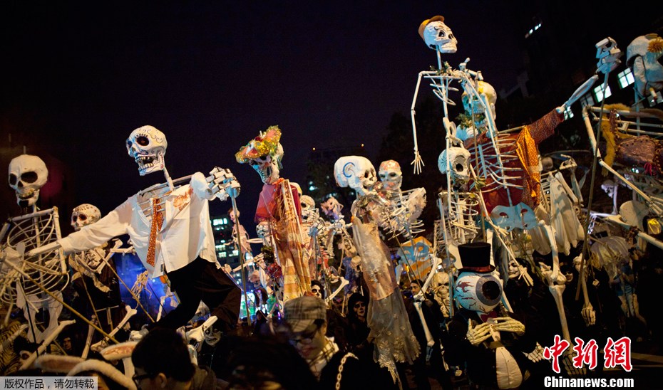 当地时间10月31日,纽约举行传统的万圣节大游行,众骷髅喧哗出动,引发现场数以千计观众关注。万圣节是西方国家的传统节日。这一夜是一年中最“闹鬼”的一夜,所以也以“鬼节”闻名于世。李洋 摄