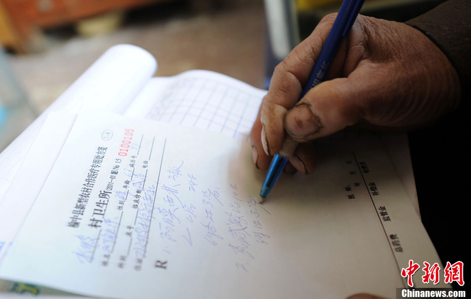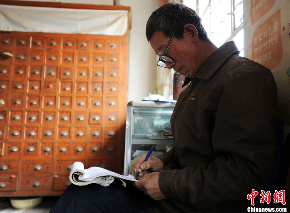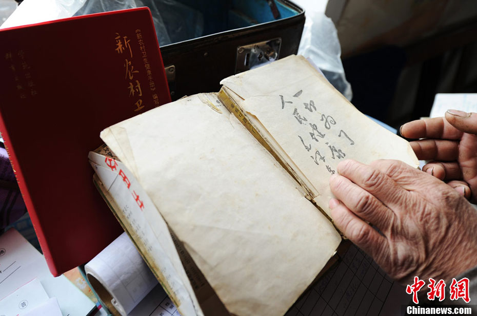 长年的风雨兼程,让李建华本人患上了严重的风湿腿疼,但他依然和自己的药箱相依为命。 杨艳敏 摄