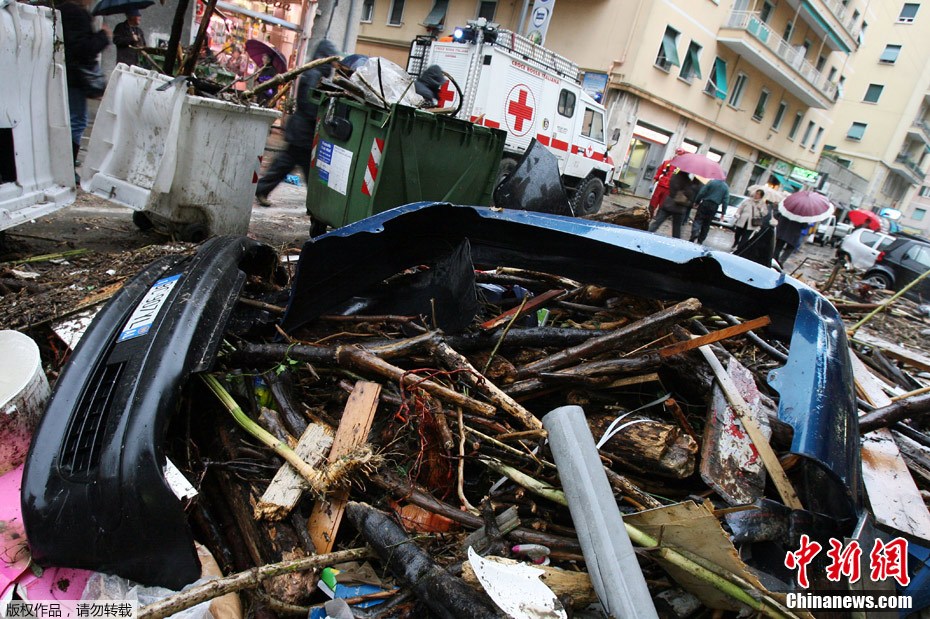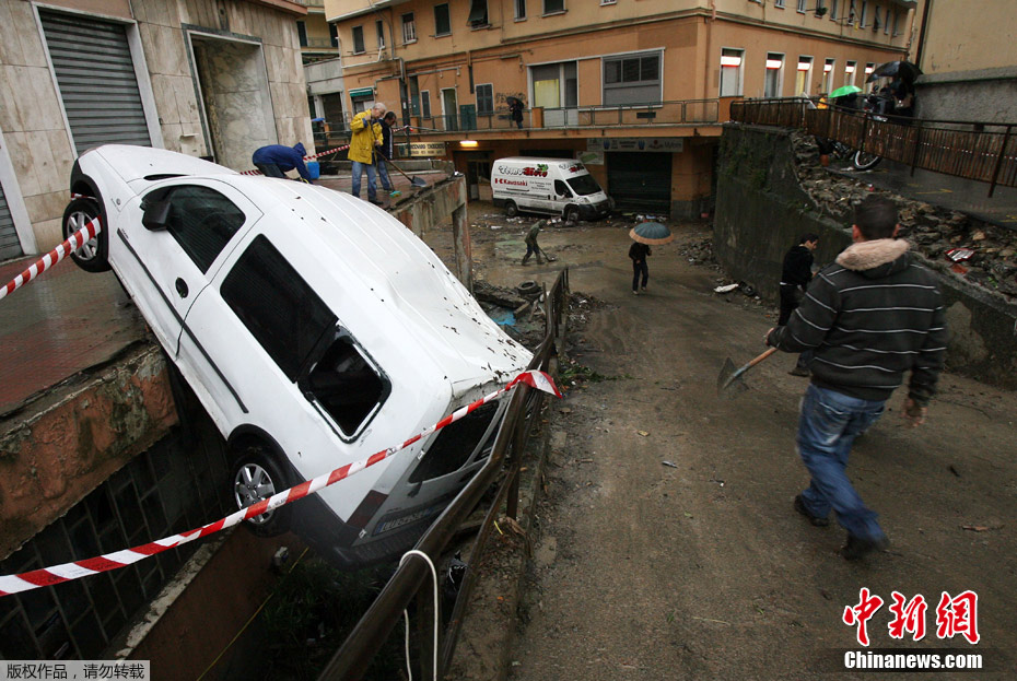 意大利热那亚遭暴雨袭击