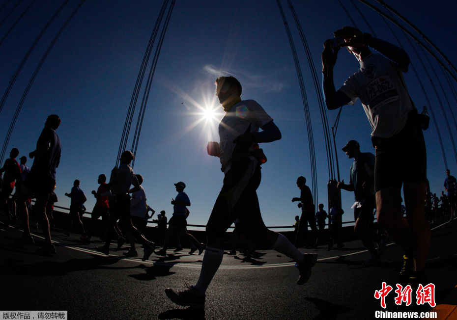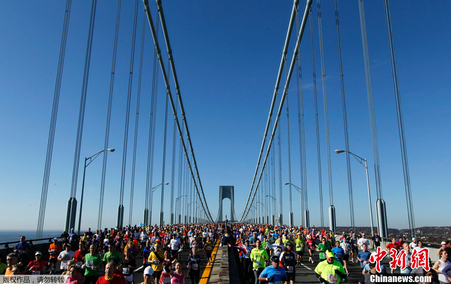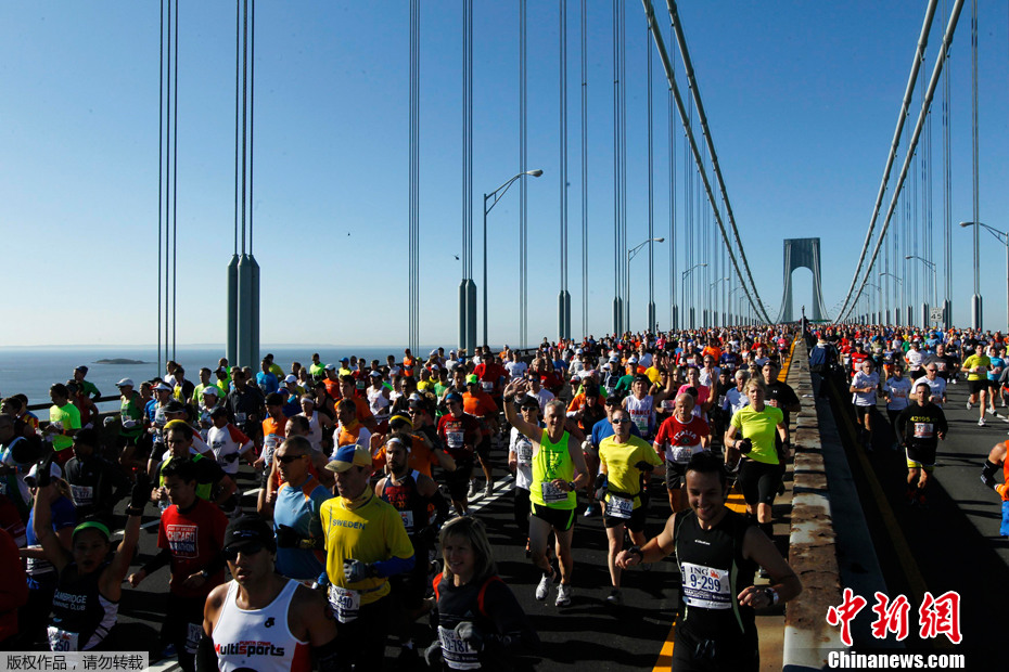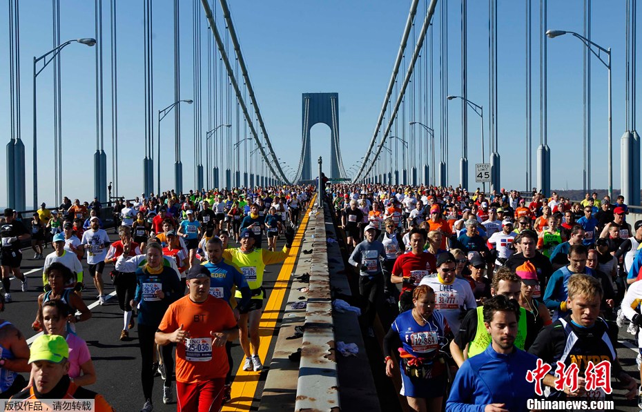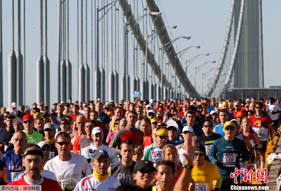 11月6日,纽约马拉松比赛鸣枪开炮。今年的比赛报名人数达到47000人,刷新了2010年的45350人的纪录。纽约马拉松的声誉仅次于波士顿马拉松,创办于1970年,每年11月初举行,参赛者最多超过10万人。参赛者通过纽约大吊桥时连桥身都震动,场面非常壮观。
