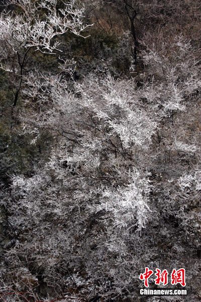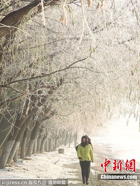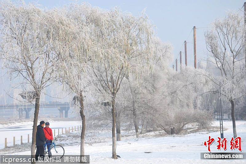 11月16日,受降温的影响,黑龙江伊春市嘉荫江段出现雾凇美景。 中新社发 陈培华 摄 图片来源:CNSPHOTO