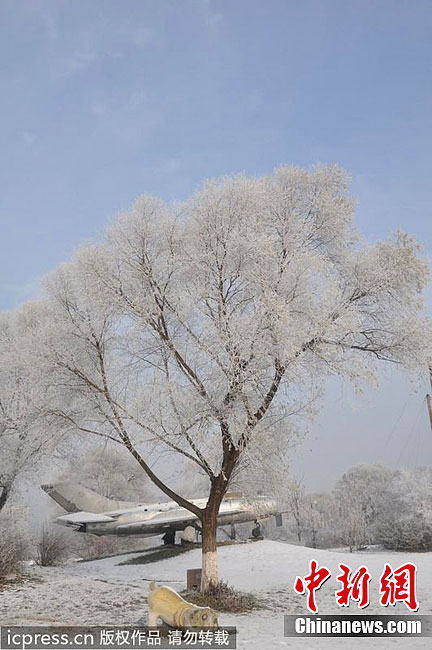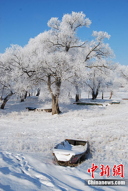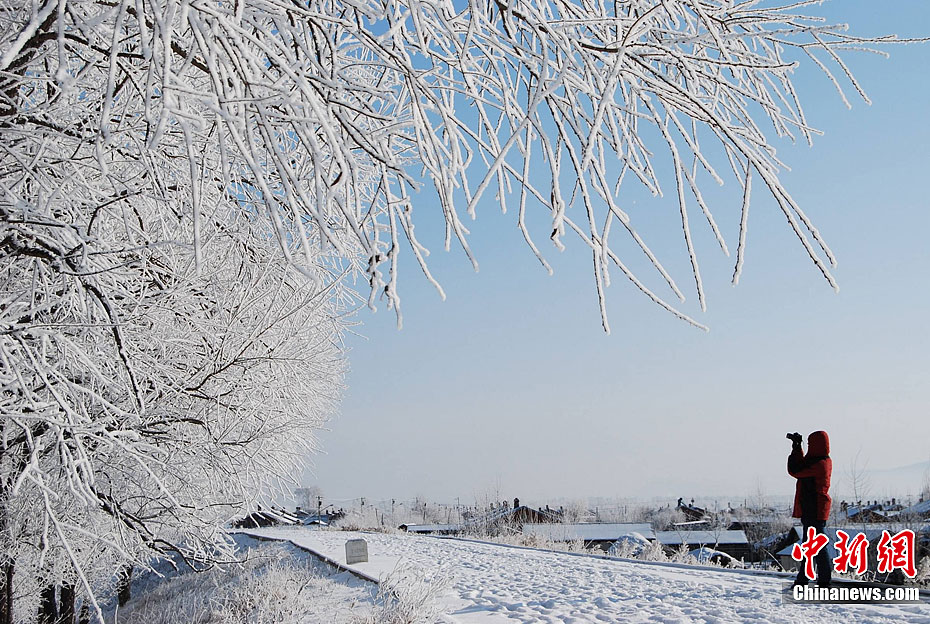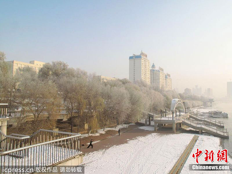 黑龙江伊春市嘉荫江段出现雾凇美景