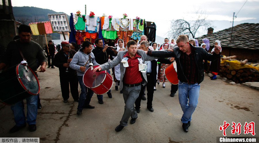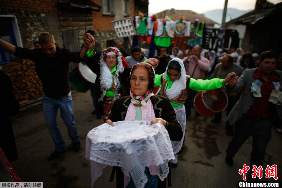 保加利亚山村传统婚礼纪实 新娘面涂厚重白漆