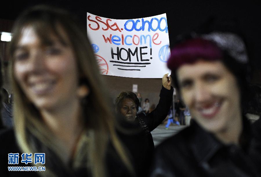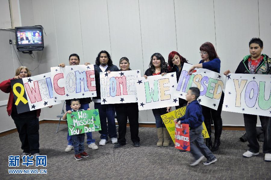 12月12日,在美国得克萨斯州埃尔帕索的布利斯堡,从伊拉克撤回的一名美军士兵与亲人见面。当天,美国陆军第一装甲师第四旅的270名官兵从伊拉克撤离,返回其在布利斯堡的基地,并与亲人团聚。根据美国与伊拉克在2008年达成的驻军地位协定,美军将于2011年底全部撤离伊拉克。张军 摄 图片来源:新华网