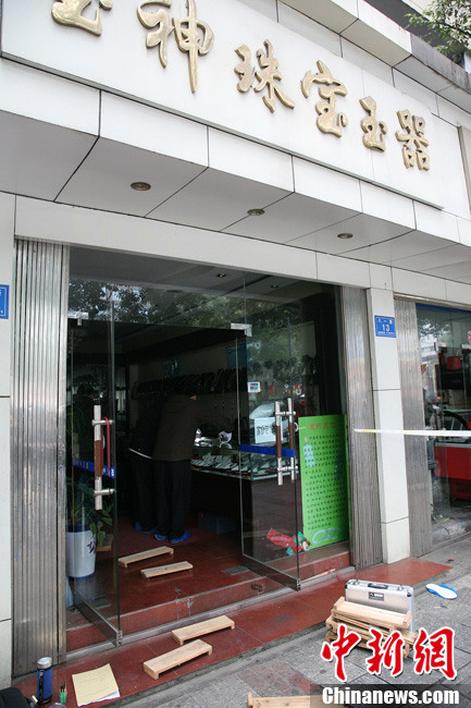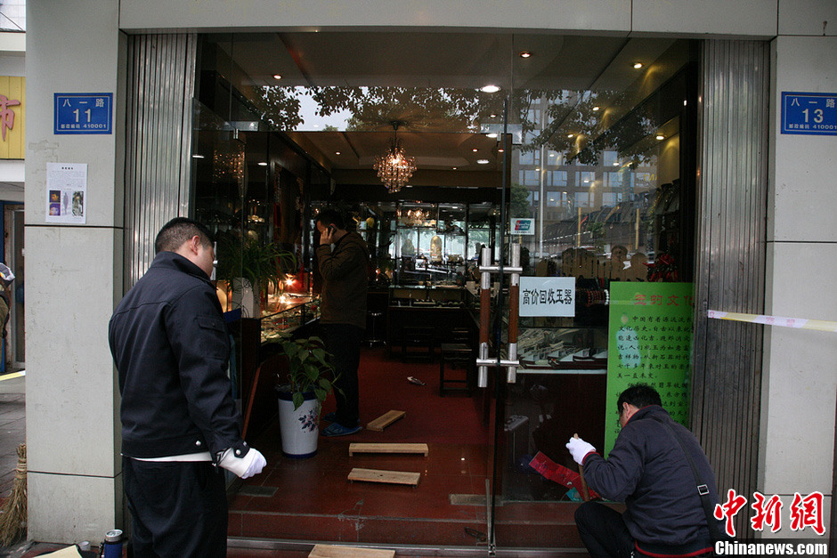 长沙市区繁华路段一玉器珠宝店遭抢劫
