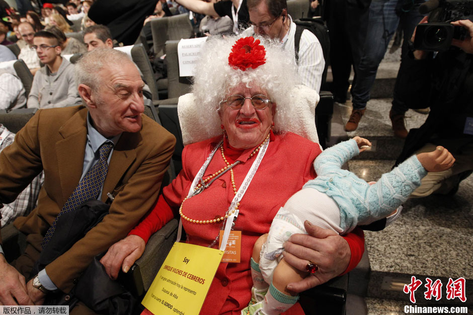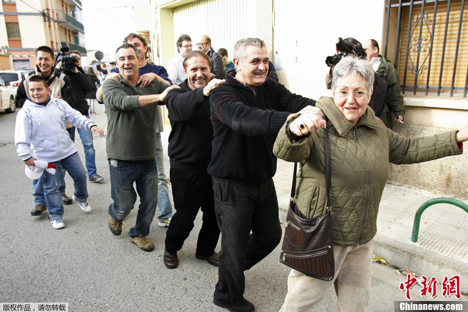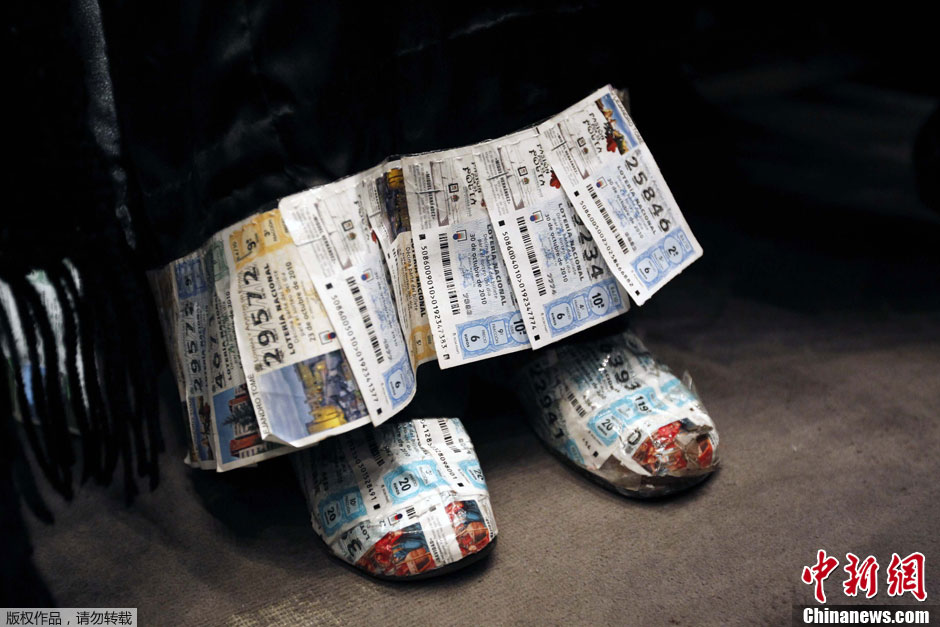 老太太身穿旧彩票 参加西班牙“大胖子”彩票开奖狂欢