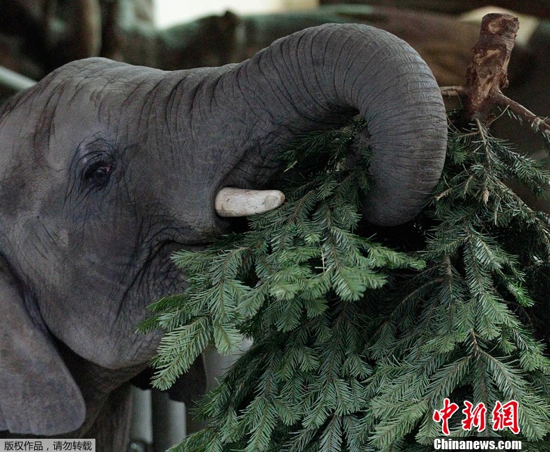 德国动物园进行动物大“体检” 倔强小象拒绝称体重