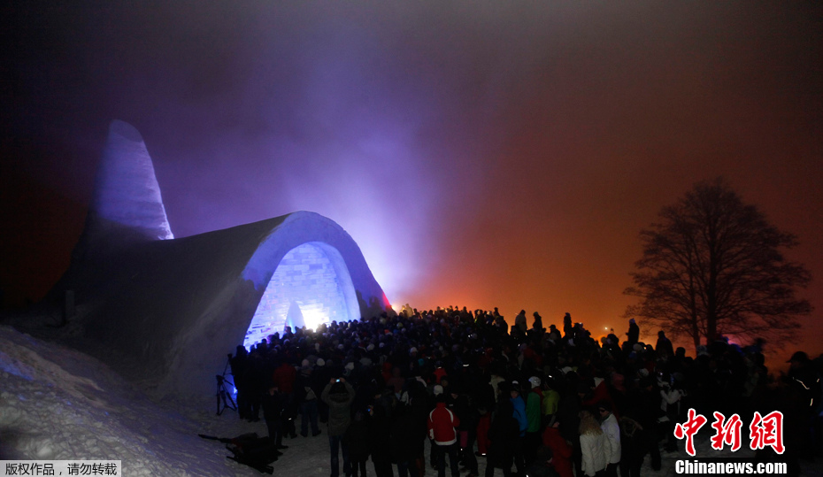 2011年12月28日,在德国巴伐利亚的一个村庄,一座由冰雪筑造约25米长的天主教堂当天揭幕。这座建筑共耗费1400平立方米的雪。