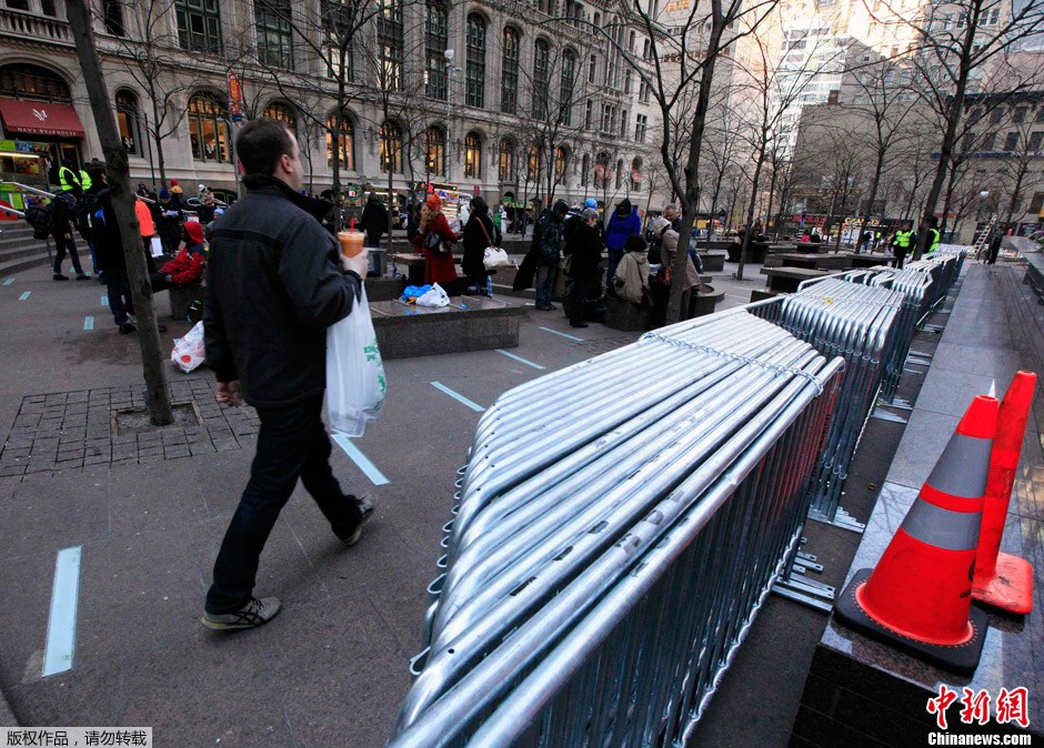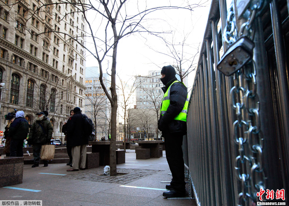 当地时间1月11日,美国纽约,数十名“占领华尔街”示威者在祖克提公园庆祝解除近两个月来对“占领华尔街”大本营的封锁。祖科提公园是“占领华尔街”运动的起源地,两个月前,警方对大本营实施了强制清场行动,并搭设围栏。