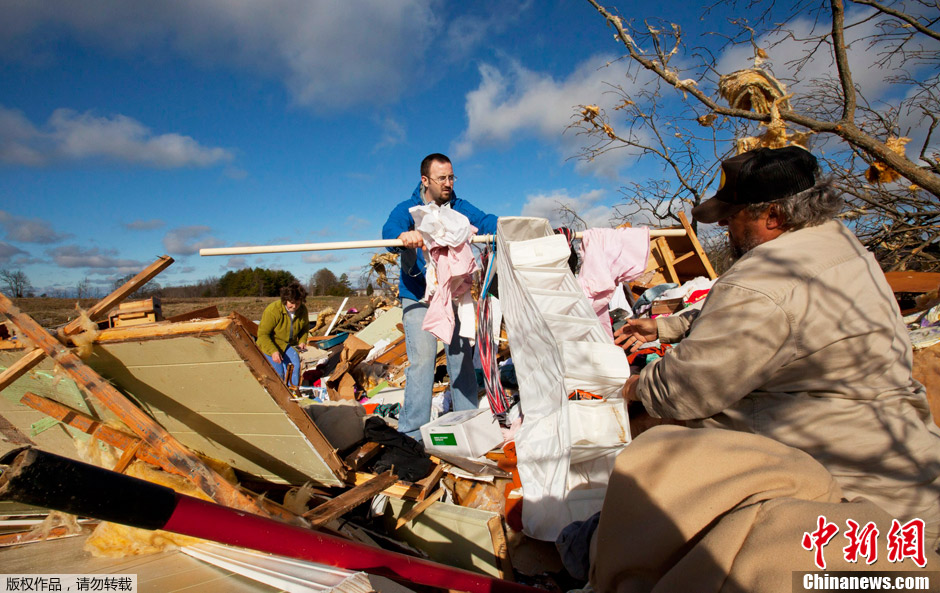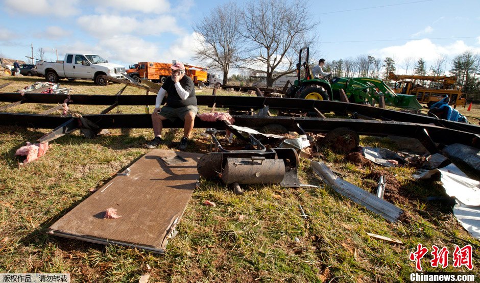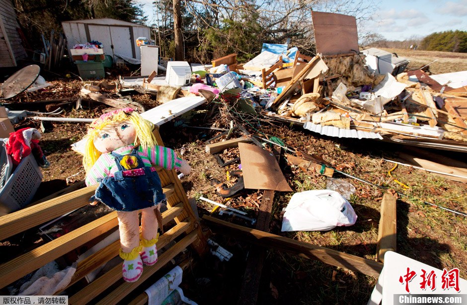当地时间1月12日,美国北卡罗来纳,萨曼莎站在疑似被龙卷风吹袭后的房屋残骸上。1月11日下午,美国北卡罗来纳西部疑似遭龙卷风袭击,造成至少15人受伤。风暴吹袭之处,树木被刮倒建筑物屋顶被掀。当地媒体称,此次风暴造成数十栋建筑受损,还有超过1000人遭遇停电。目前气象专家正在对这一地区进行检查,以确定此次风暴是否属于飓风。