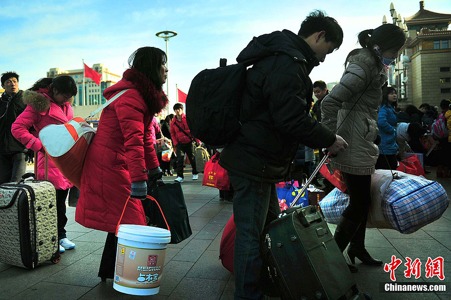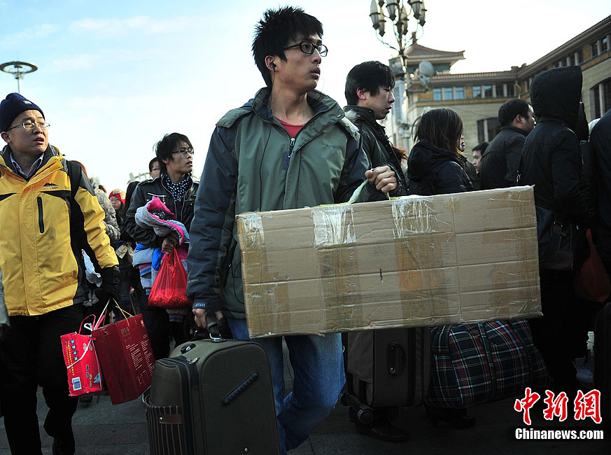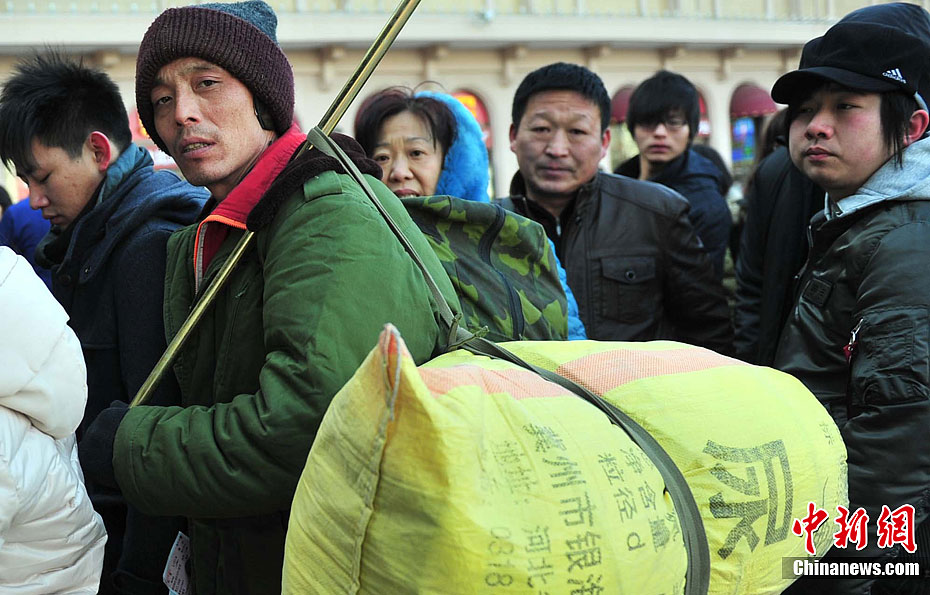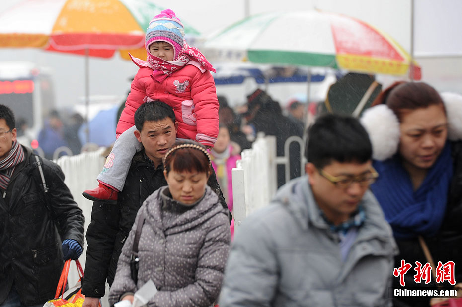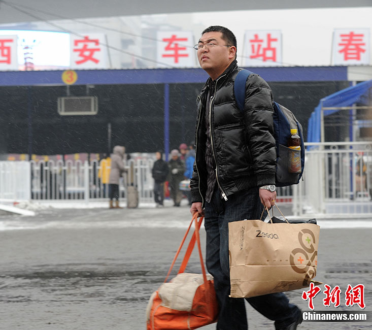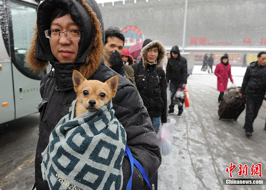 2012年01月20日,甘肃省兰州市,因为降雪原因,兰州发往各地大部分班车停运。图为被滞留的旅客。浅行 摄 图片来源:CFP视觉中国