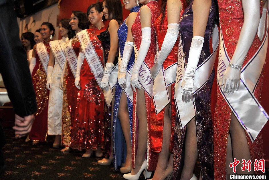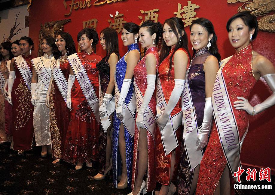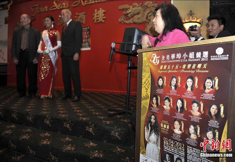 当地时间1月30日,12名佳丽在美国旧金山中国城亮相,她们将于2月4日参选第55届全美华埠小姐。中新社发 陈钢 摄