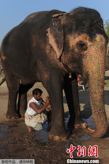 印度大象享受“一条龙”式服务 洗澡搓背样样不落