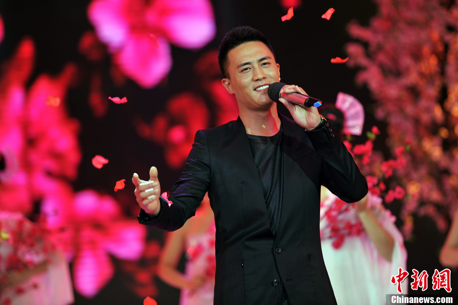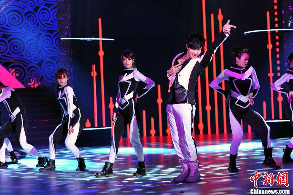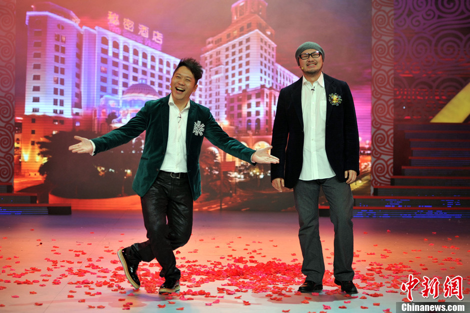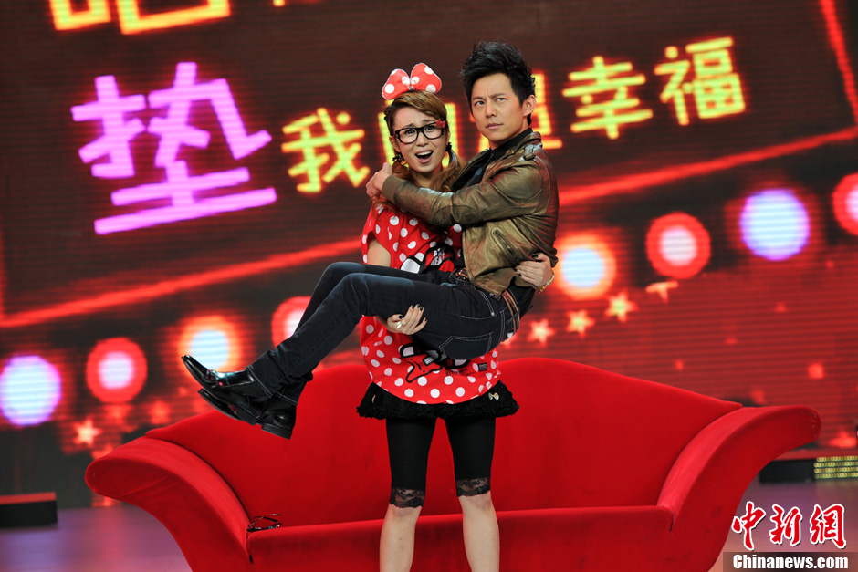 此次元宵喜乐会赵本山虽因病缺席,但由他钦点的爱徒丫蛋夫妇第三次助阵元宵喜乐会,带来《泰坦尼克》版东北二人转,而这也是丫蛋自从去年11月份晋升为妈妈后的复出首秀;另外广受追捧的林俊杰、郭冬临、吴克羣、庾澄庆、小小彬、卜学亮、新《还珠》、《宫2》剧组成员、周卫星、何晶晶节目皆令观众们整晚笑不停、HIGH不停。图为日前饱受争议的郭冬临当晚亦受邀参加湖南卫视元宵喜乐会。舞台上一身红装的郭冬临与搭档张大礼、宋宁、雷俊淇为观众带来既充满欢笑亦感动人心的小品《离婚餐厅》。中新网记者 金硕 摄
