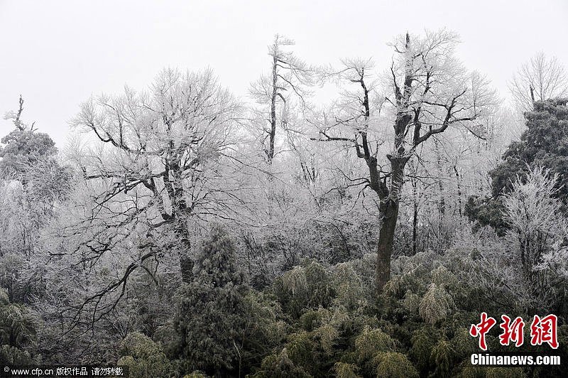贵阳持续低温 春寒现雾凇