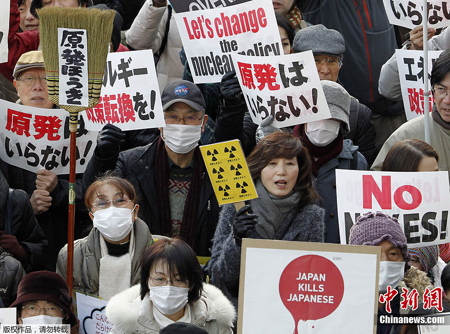 当地时间2月11日,日本东京涩谷区代代木公园内1万多人参加了由日本诺贝尔文学奖得主大江健三郎等人发起的“再见核电站、1000万人联署活动”集会并进行了示威游行活动。