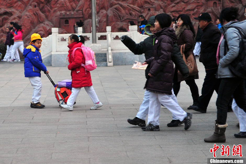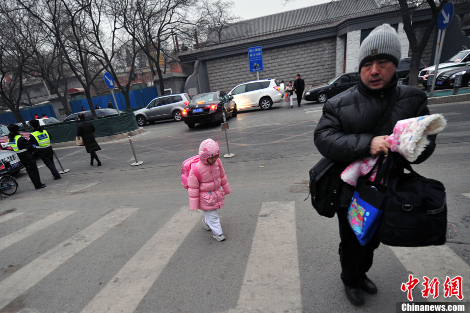 2月13日,北京市中小学生迎来开学第一天。全市女交警护送岗将再次启动,在校园门前及周边地区增派区域警力,加强疏导维护,500名女交警和女协管员实名制上岗值守校园,重点负责小学生及幼儿园儿童的护送。图为北京小学的老师与学生为开学典礼做准备。中新网记者 金硕 摄