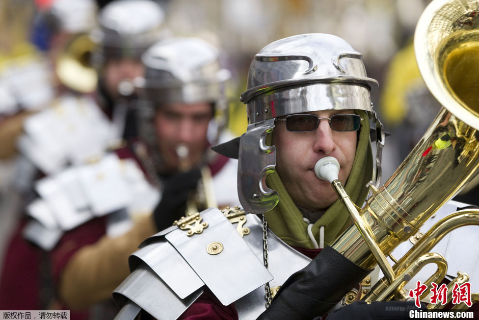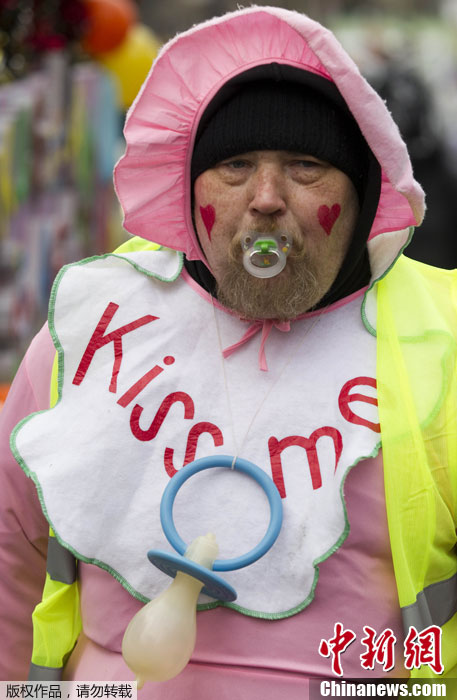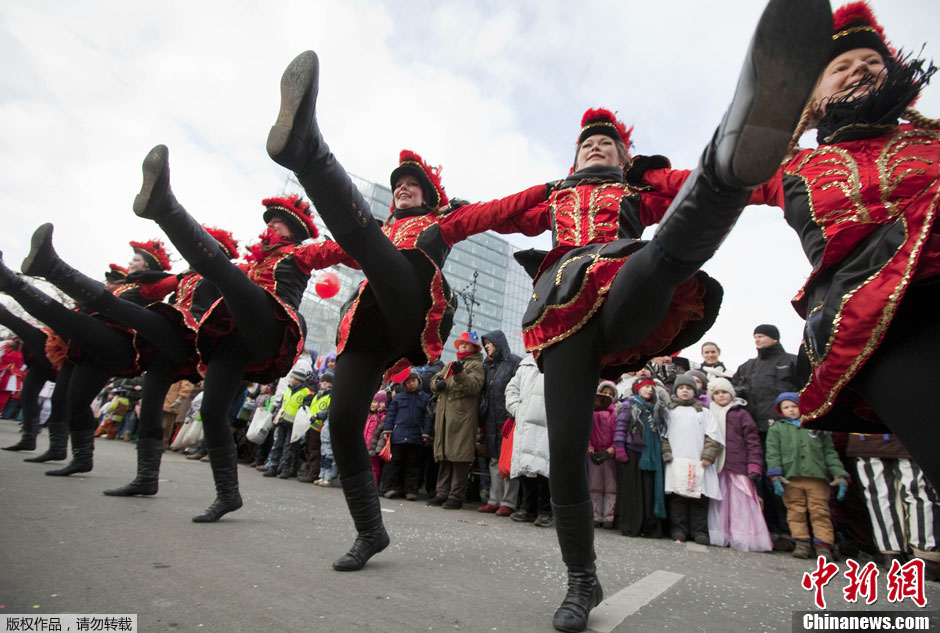 不畏欧洲极寒 狂欢者搞怪扮相参加柏林狂欢节