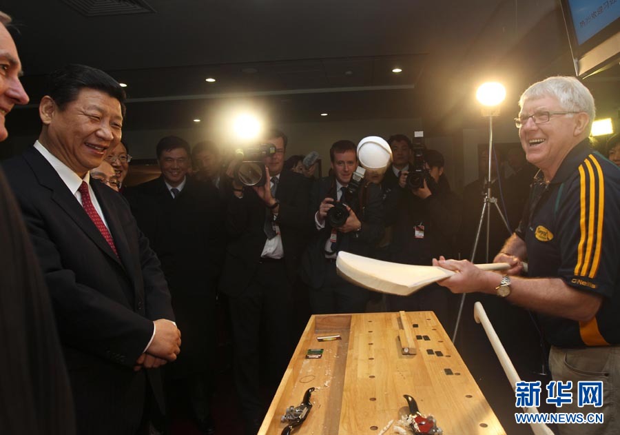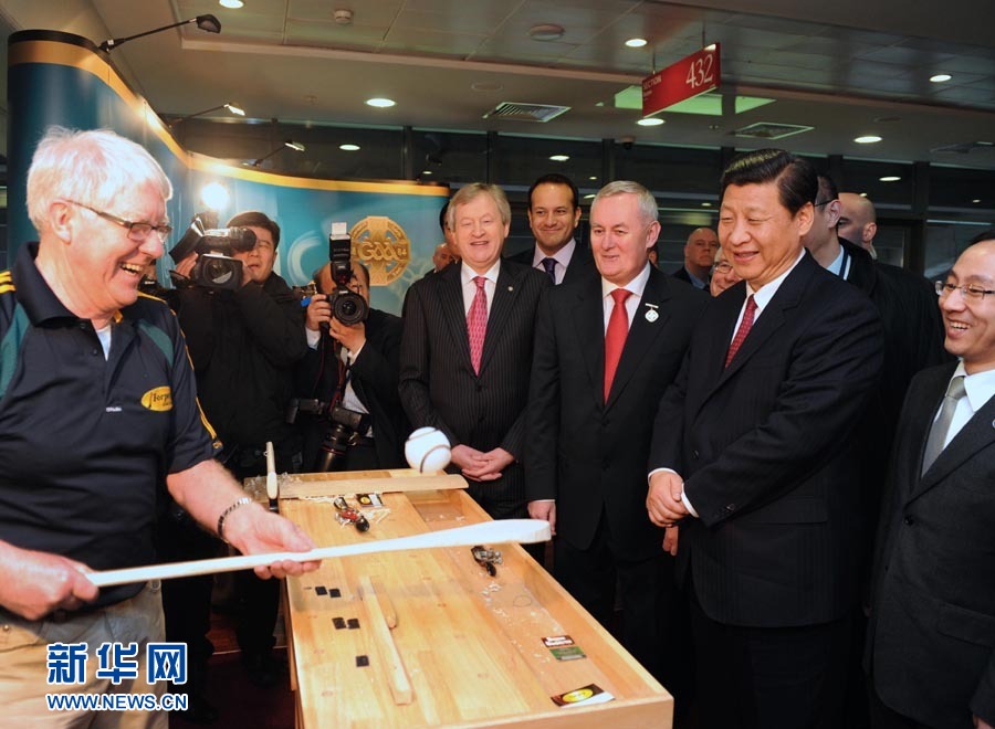 2月19日,中国国家副主席习近平在都柏林参观爱尔兰盖尔式运动协会总部。这是习近平与爱尔兰运动员合影。新华社记者 张铎 摄 图片来源:新华网
