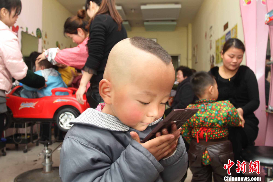 图为2月23日一大早,北京老字号四联美发店内顾客排队等候理发。据副总经理朱兴玉介绍,当日的客流量预计至少是平时的三倍。中新社记者 刘关关 摄