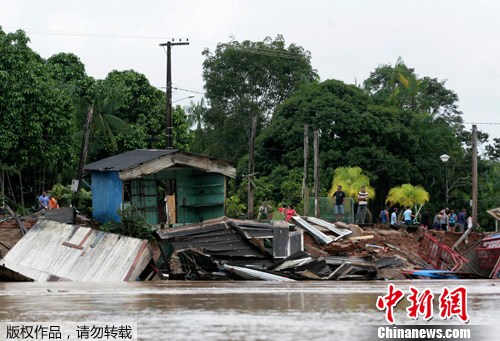 强降雨导致南美阿克里河洪水泛滥