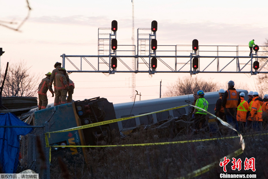 加拿大东部安大略省伯灵顿市附近26日发生火车出轨事故,目前已造成至少3人死亡,数十人受伤。(视频截图)
