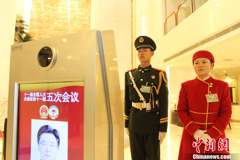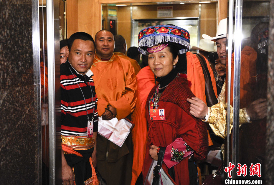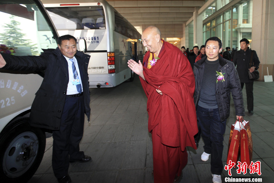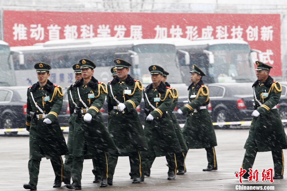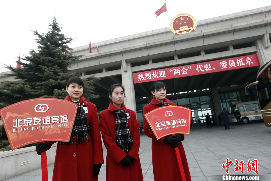 2012年3月1日,北京西郊机场,来自云南省的全国政协委员在停机坪上下人们招手示意。晓晨 摄 图片来源:CFP视觉中国