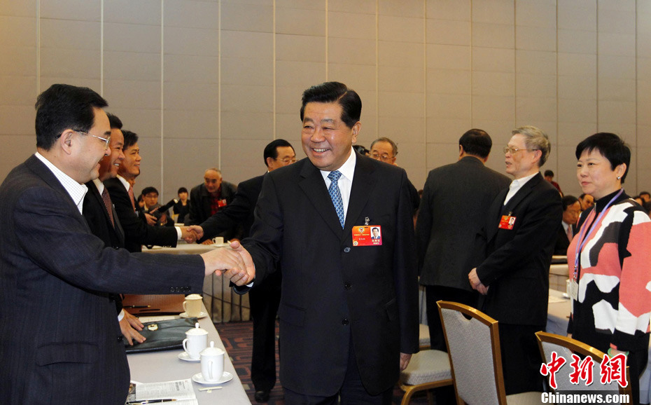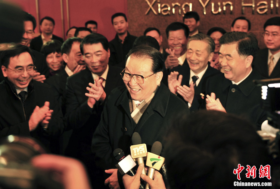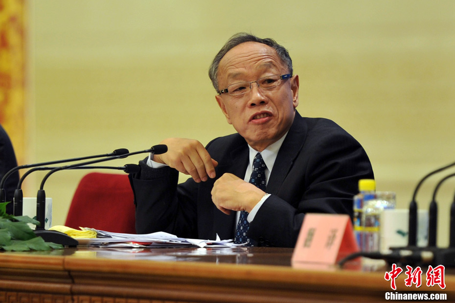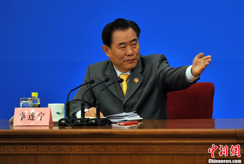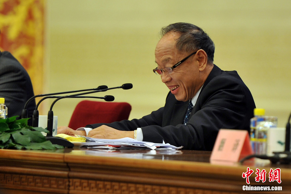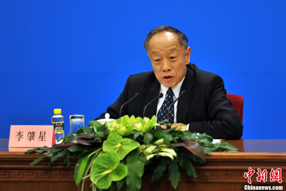 3月4日上午,十一届全国人大五次会议在人民大会堂三楼金色大厅举行新闻发布会,由大会发言人李肇星就会议议程和人大工作相关的问题回答中外记者的提问。图为中新网记者现场报道。中新网记者 金硕 摄