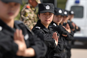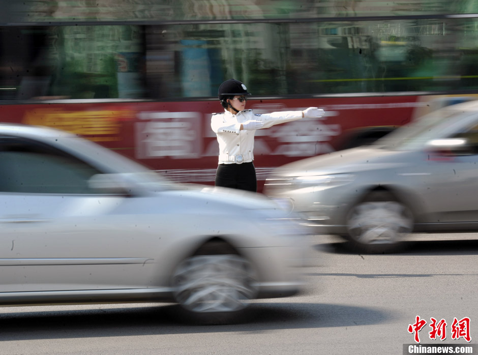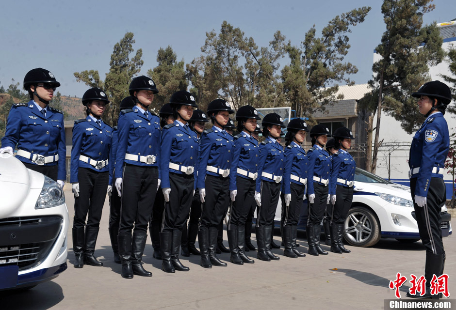 四川凉山州西昌市有太阳城、月亮城的美称,该市组建的首支女子特勤中队即将登台亮相。21名年轻的女子交警们是从700多名大学生中选拔而来,她们分别来自四川、湖南等地,平均年龄23岁,还未正式上岗的首支女子交警就已成为当地街头的一道靓丽风景。目前,21名年轻的女子交警正在当地警校开展为期3个月的封闭培训,培训结束后,将走上西昌城内的一些街道进行执勤。图为正在街头执勤的女子交警。刘忠俊 摄