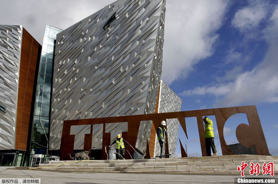3月7日,英国北爱尔兰首府贝尔法斯特,世界最大的泰坦尼克号景点准备就绪,即将在三月底开门迎客。