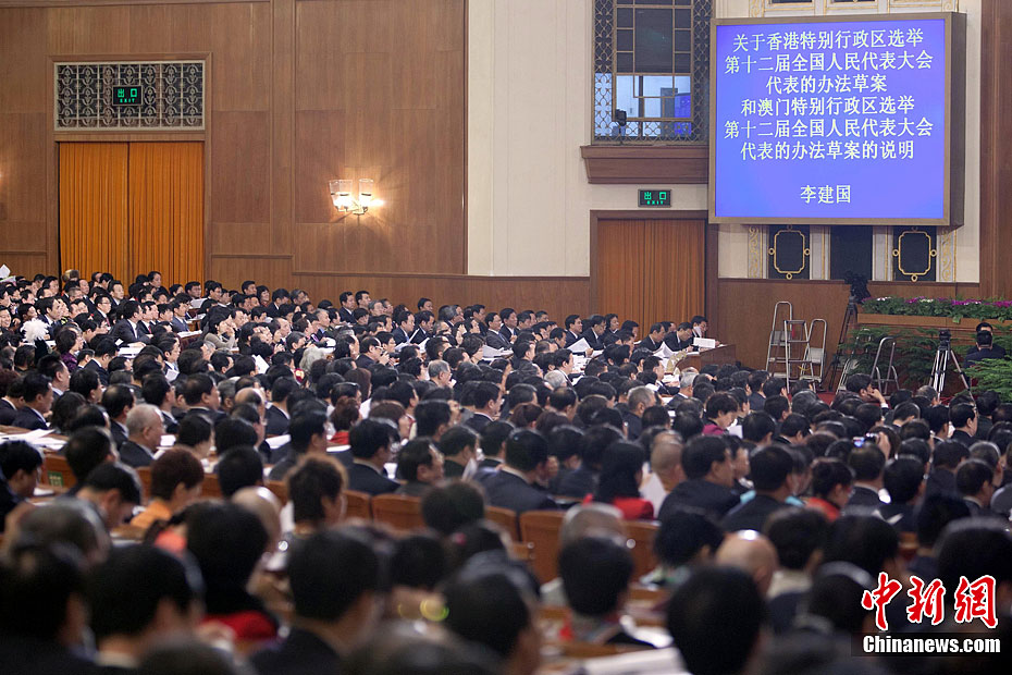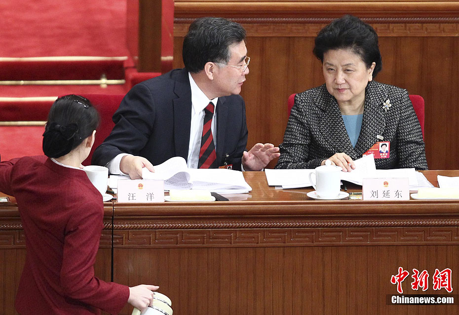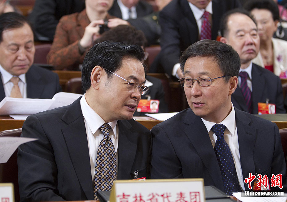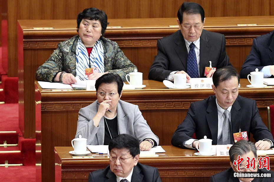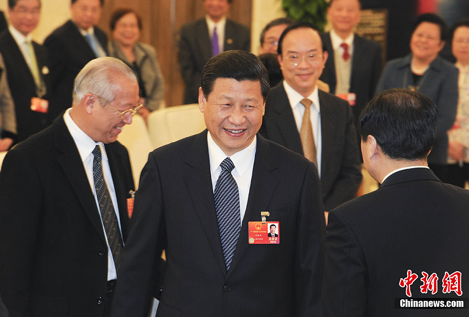 3月8日下午,中国国家副主席习近平在北京人民大会堂香港厅与参加十一届全国人大五次会议的香港代表团一起参加代表团全体会议。中新社记者 任海霞 摄