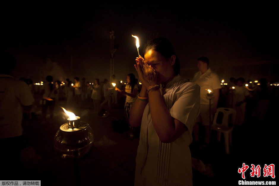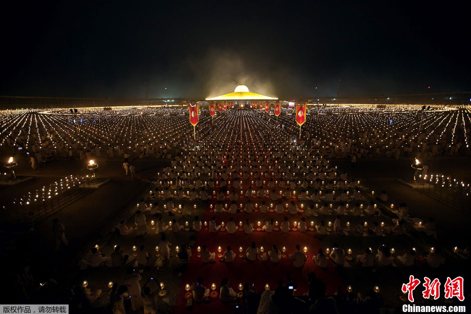 泰国千余僧侣燃烛诵经庆祝万佛节