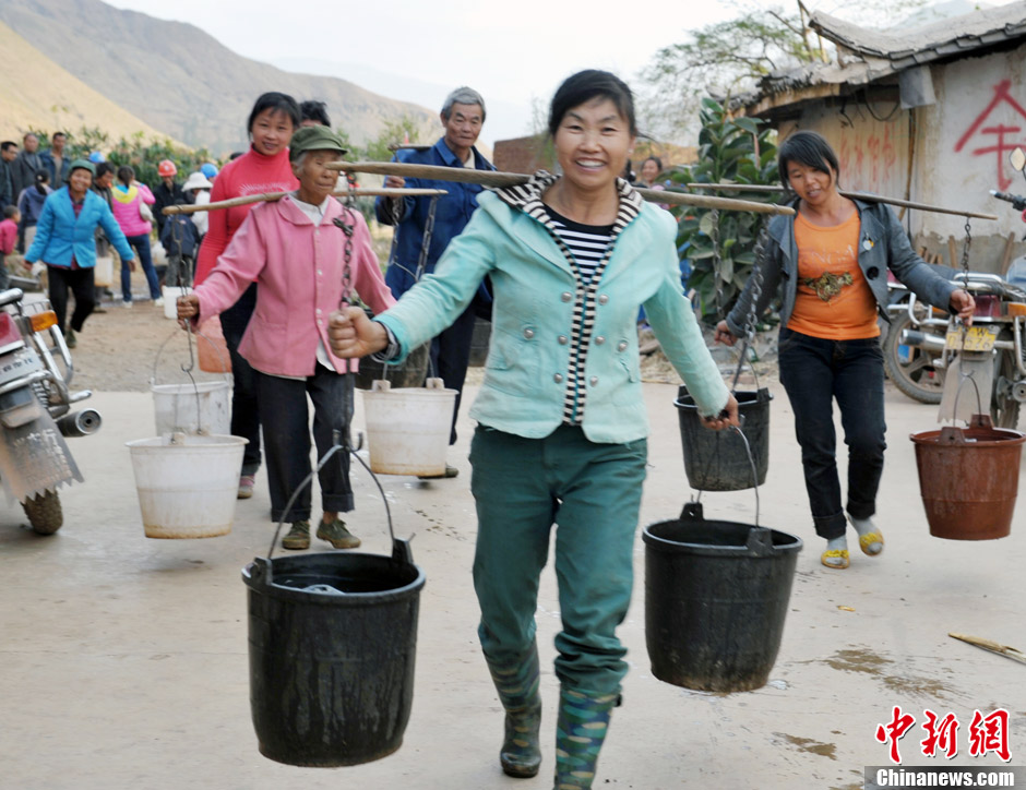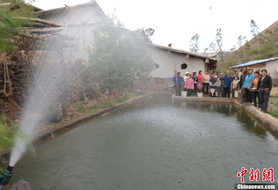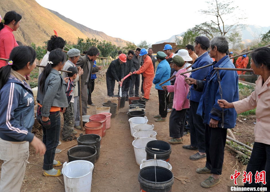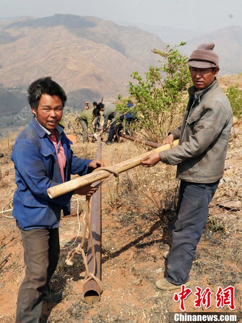 3月9日,四川会理杨家坝乡庄房村支部书记刘华友说“因干旱,地里农作物已换成耐旱的芒果树。” 会理县杨家坝乡庄房、绿林、新安傣族乡是2008年“8.30”地震重灾区,从2011年8月以来,滴雨未降,田地溪流干裂断流。“我们生活用水全靠去城河挑,来回一趟要两个多小时,挑一趟水太困难了。”刘华友说,村里的庄稼已三年无收成了。去年村里刘云中家种的40亩豌豆苗,因为干旱,只收了不到200斤豌豆,连种子钱都不够。从山下挑回来的水,连基本生活都无法保证,村民们更舍不得拿来浇地了,村民们情愿将地荒着,也不愿意再种。村里的大多数农作物已枯死,唯一还活着的就只有芒果树,现在正是开花挂果时节急需浇水。