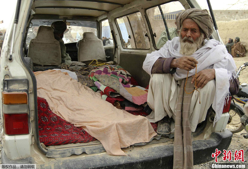 据坎大哈省当地政府官员介绍,当地时间3月11日凌晨,一名美军士兵闯入该省潘杰瓦伊地区美军基地附近一村庄的几栋房屋里,向屋内平民开枪,包括妇女和儿童在内的16名平民被打死。这是一名阿富汗男子透过车窗查看车内的尸体。